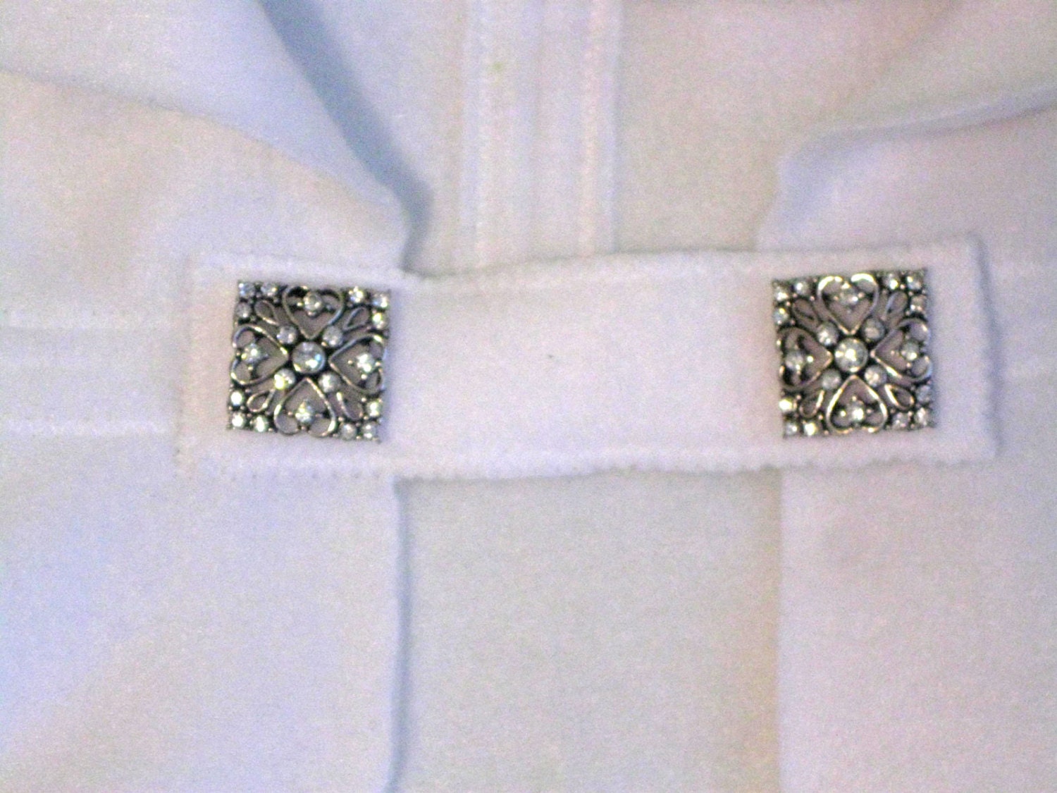 Two decorative buttons (easy on/off hook-and-loop closure). Choose your favorite buttons (last 3 pics in the listing - specify the style number when ordering the cape) or let me know what character/style you'd like and I'll try to get the best fitting style for you.
